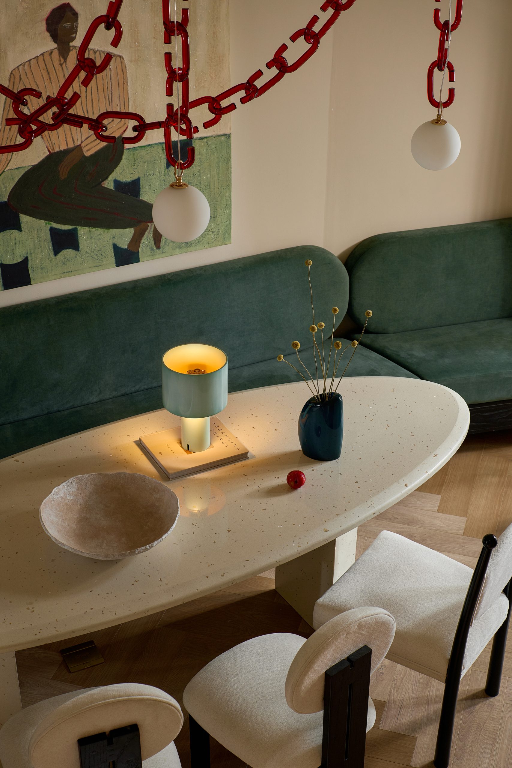 Sản phẩm đá Vicostone White Shells độc đáo với thiết kế sử dụng vỏ sò vỡ, tạo cảm giác trầm tích của biển xanh