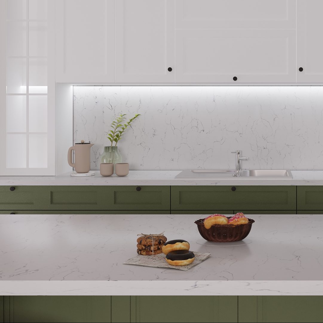 Sản phẩm đá Vicostone Bianco Venato là sự là một sự sáng tạo độc đáo từ dòng đá cẩm thạch nổi tiếng cùng tên của Ý, các kỹ sư Vicostone đã tinh tế chỉ giữ lại những đường vân mỏng nhẹ như những sợi chỉ thay vì những cây vân lớn, để chúng xuất hiện trên nền màu cẩm thạch trắng sáng hơn so với dòng đá tự nhiên vốn có