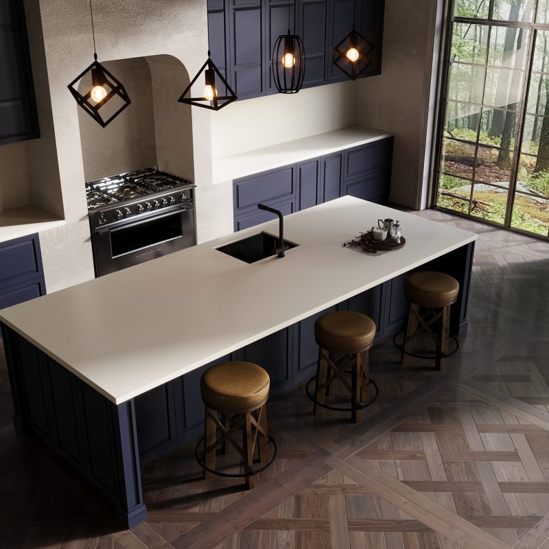 Lấy cảm hứng từ đá cẩm thạch tự nhiên, sản phẩm Vicostone Valley White độc đáo với hiệu ứng vân rối màu tối xuất hiện trên bề mặt nền trắng tinh tế